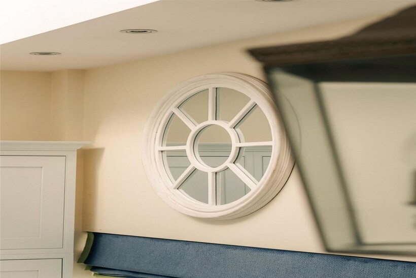 The lower ground floor features an open-plan kitchen and dining area, with high ceilings and overhead skylights bringing in brightness throughout the day. This floor also contains a utility room, a guest WC, and a bedroom with an ensuite bathroom.