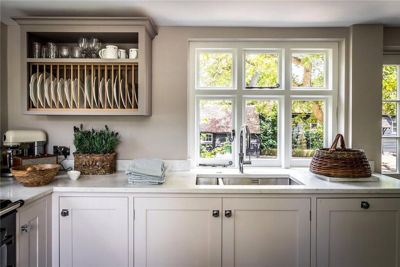 SHORT LET: Located within the Surrey Hills, a stunning, Grade II listed property with postcard-worthy wisteria-clad Queen Ann façade, 16th century origins, all set within five acres of charming gardens and grounds.This property has been extensively refurbished and provides great family accommodation, a further barn for a gym / office and a number of other barns.