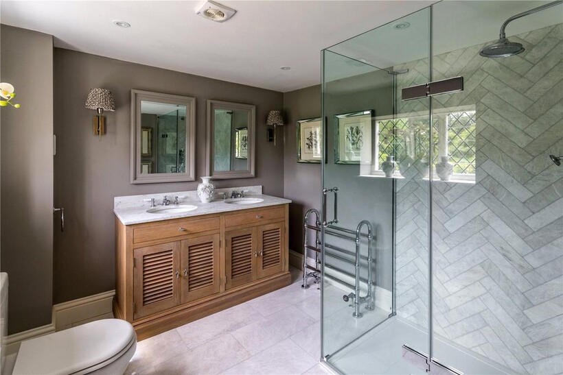 The grounds are a delightful feature with formal gardens, tennis court, paddocks and pond, and superb views towards Ranmore. The property has easy access to bridleways and footpaths.