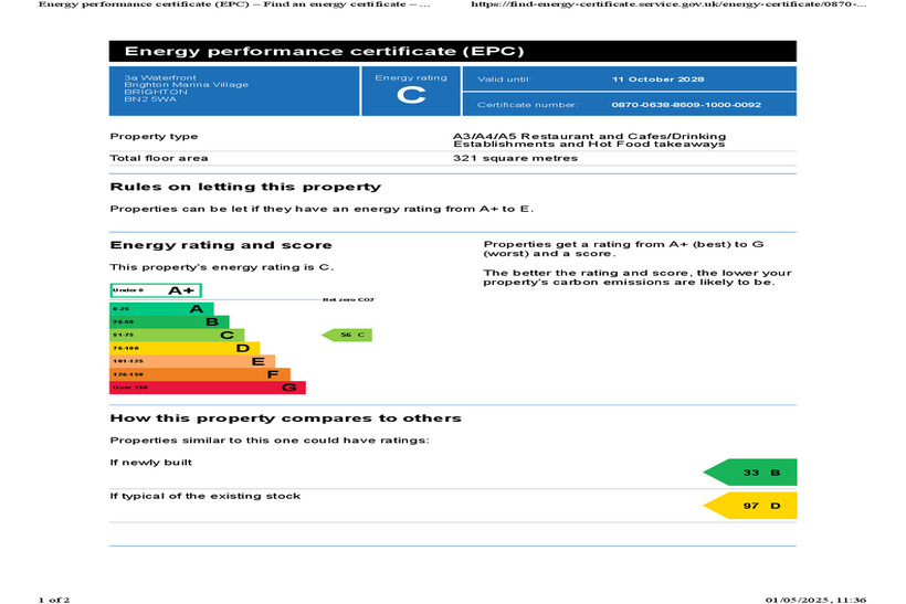 Purpose-built well fitted restaurant premises including a fully equipped former kitchen. The property comprises a ground floor dining space & kitchen to the rear with additional mezzanine overlooking the area below. It also boasts a sought-after outdoor seating area with picturesque views over the waterside and mooringsThe property is situated in a delightful position on The Boardwalk at Brighton Marina, surrounded by operators such as Pizza Express, Vroom, VR Golf, Globalls, Nando's, 5 Guys, Mal Maison Boutique Hotel, the newly opened LA Pool & a soon to open, family indoor football entertainment space. Hollywood Bowl Bowling Alley, an 8 Screen Cineworld Cinema & David Lloyd Gym are also situated to the west of the unit within The Marina. The Marina is situated to the east of Brighton City Centre & can be accessed easily by car, bus or on foot. Black Rock sits immediately adjacent to the scheme and is undergoing improvement works which will further enhance the Marina & Access to it.