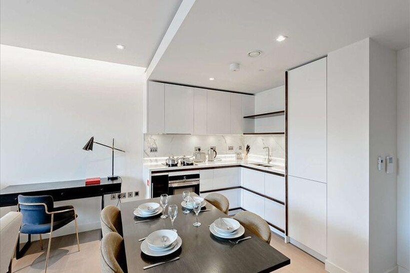 PLEASE QUOTE REFERENCE LC1220A luxurious interior designed one-bedroom 2nd floor apartment set over 559 SqFt comprising a large open-plan reception room leading onto a private(inset) balcony. The fully integrated kitchen with appliances from Siemens and Miele including oven and induction hobs, large fridge freezer and dishwasher and wine chiller all inset into a composite stone work tops. The apartment has one double bedroom and one bathroom. The whole apartment also benefits from comfort cooling.This apartment comes complete with large Samsung Smart TVs and Samsung sound bar and is offered with full use of the onsite facilities including Gym, pool, residence lounge area, privet dining room, conference facilities, 24 hour concierge and Cinema room. The apartment is ready to move into with internet already connected. Please note that the images are generic but typical style of the flats.