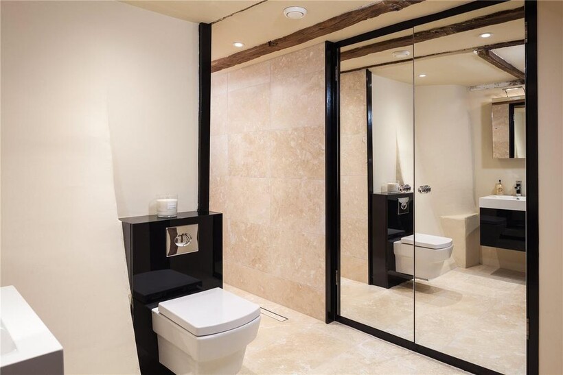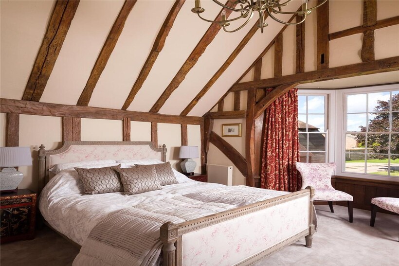 Housed within the Great Chamber is a stunning master suite, with an imposing crown post reaching up and into a beamed vaulted ceiling. A freestanding copper bathtub with twin matching hand basins offers a taste of boutique decadence. In addition his and hers en-suites complete this unforgettable element of the home. A guest suite within the principle residence is accessed by means of its own dedicated solid oak staircase, and affords a luxurious and private area. A cellar offers both dry storage, boiler room and access to a vaulted stone and brick wine store.