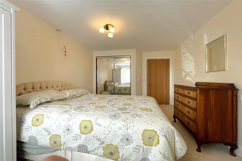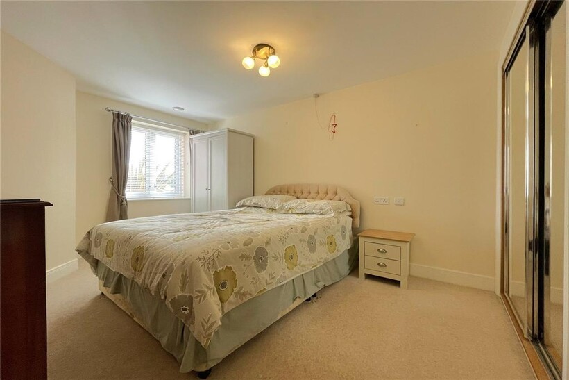 The double bedroom offers a built-in mirrored wardrobe as well as the pictured furnishings for added convenience. A modern wet room provides the benefit of both a bath and accessible shower.