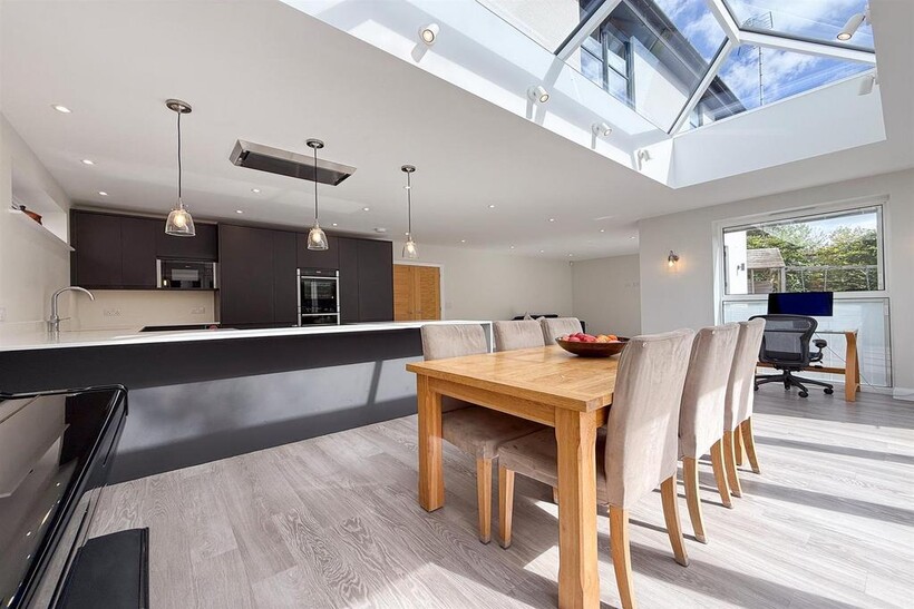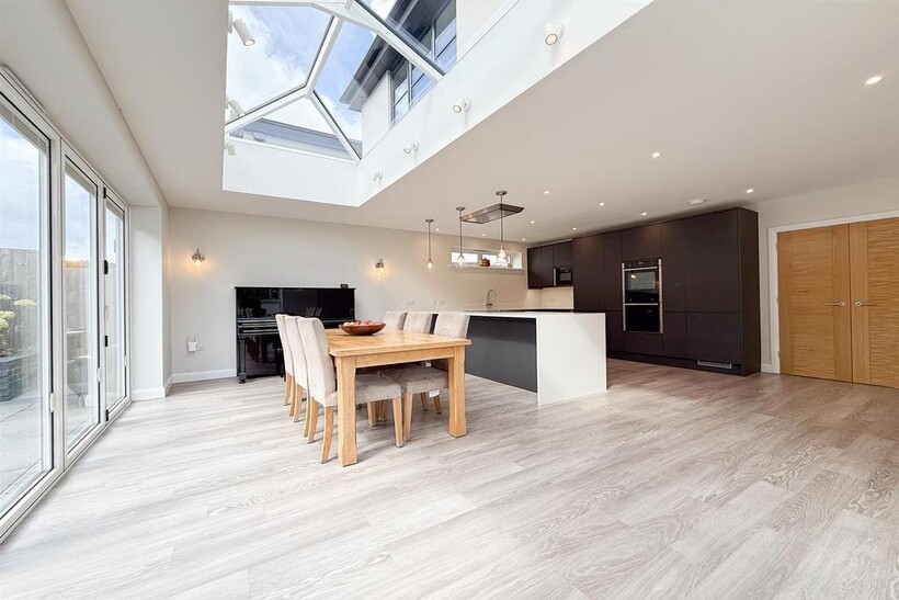 This contemporary family home is presented in excellent order throughout and offers flexible living space throughout. Briefly comprising of a large entrance hallway, large sitting room with wood burning stove, spacious formal dining room / second reception room, a bright and spacious kitchen / dining / family sitting room with quartz surfaces, integrated appliances and doors to the garden, utility room and WC. The first floor has four double bedrooms including master suite with dressing room and en suite shower plus a well-appointed family bathroom with shower and double ended bath. To the second floor there are two further bedrooms and a modern shower room.