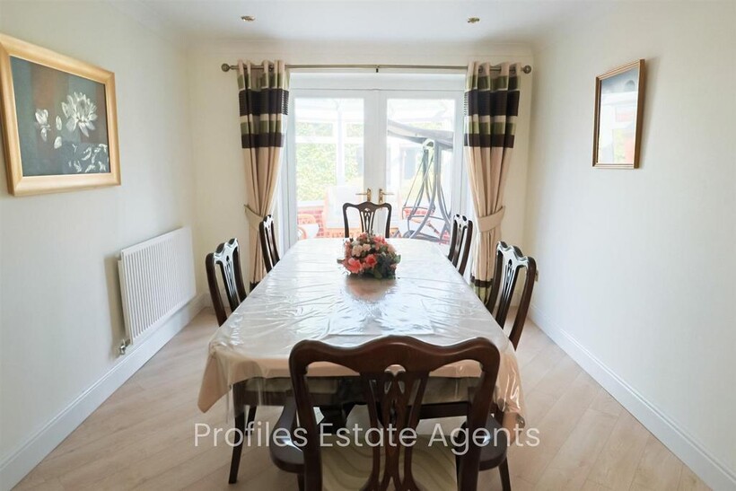 Separate Dining Room (Rear) - 3.79 x 3.27 (12'5" x 10'8") - Twin PVCu double glazed french doors, coving, downlights to the ceiling and radiator.