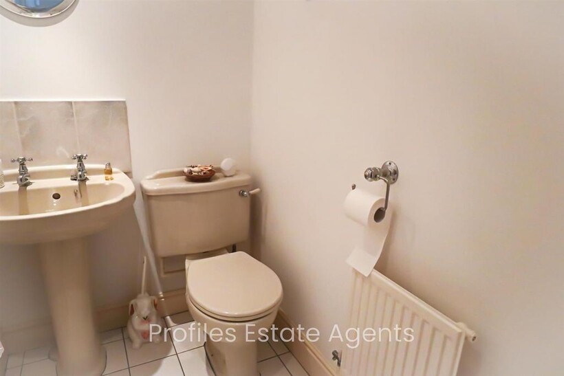 Guest Cloakroom (Side) - 1.20 x 1.68 (3'11" x 5'6") - Wash hand basin, low flush wc, downlights to the ceiling, extractor hood, radiator and ceramic tiled floor.