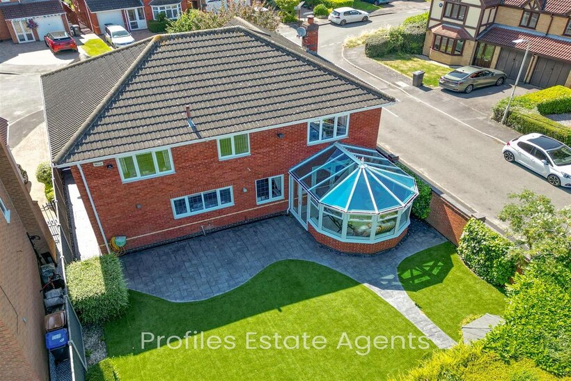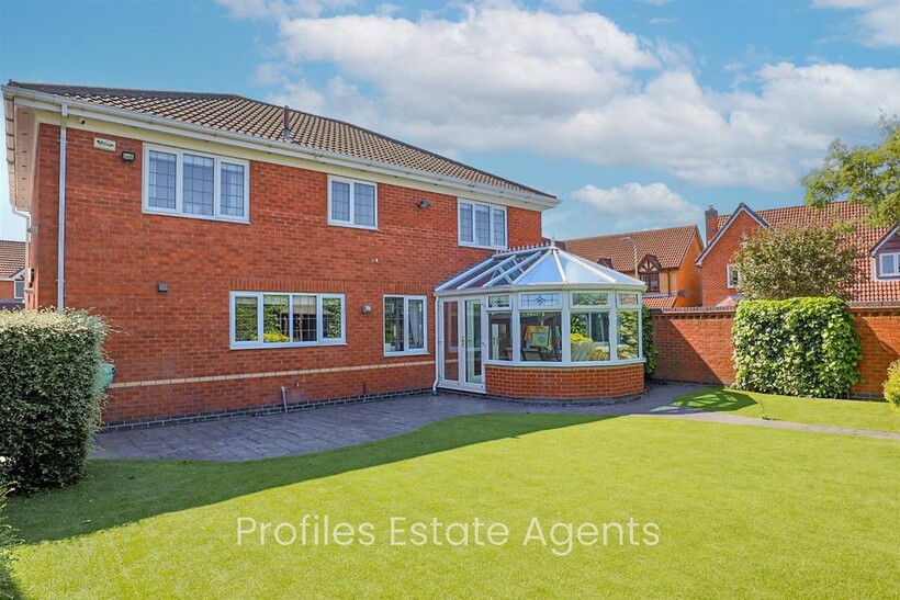 A stunning 5 bedroom, 2 bathroom, family detached ex David Wilson show house. The property occupies a corner commanding position in a popular and desirable location. Additional benefits of gas central heating (condensing boiler), PVCu double glazed, spacious lounge, separate dining room, victorian conservatory, study, bedroom 1 with en-suite bathroom, fitted wardrobes to all the bedrooms, enclosed walled private landscaped rear garden with artificial lawn, intruder alarm, double garage and an attractive imprinted concrete driveway with parking for several cars. Ideally located close to all local amenities, whilst being accessible for commuting to all major road links such as the A5, M69, M1 and M6.