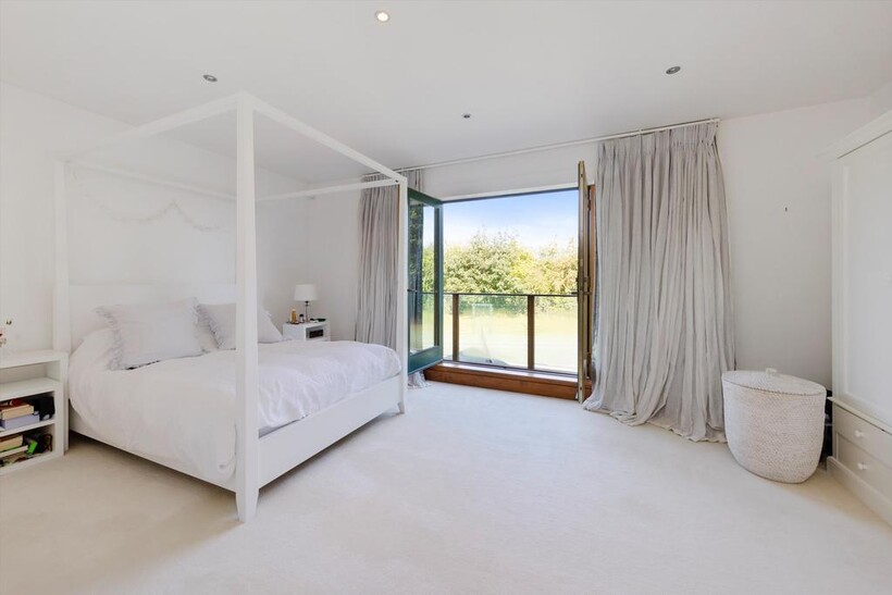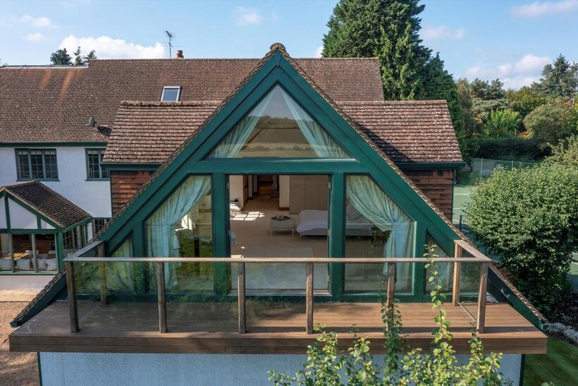 On the first floor is the large principal bedroom suite with double doors onto the balcony with views over the garden and adjacent meadows. There are four further large double bedrooms all with en suites. One of them also benefits from having a balcony overlooking the rear garden and tennis court.