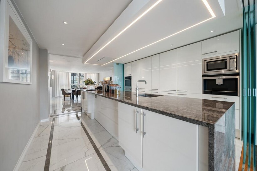 A unique newly refurbished interior designed duplex penthouse apartment, set over 3,160 sq ft and offering three spacious double bedrooms, two ensuite bathrooms, family bathroom and guest WC, all within Imperial House, a boutique modern building in the heart of fashionable Kensington.Via a private lobby, you enter an apartment which has been created for a luxurious bright and opulent living experience. The reception and dining room comes complete with expansive windows and an open plan, fully integrated kitchen/breakfast room, offering spectacular entertaining and living spaces. A stunning customized glass staircase offers uninterrupted double height views across London, which in turn leads you up into a unique entertainment and relaxation space offering several lavish areas as well as comfortable dining for up to 10 people. The open plan feel combines perfectly with two stunning outdoor seating areas that extend seamlessly through from multiple bi-folding doors.
