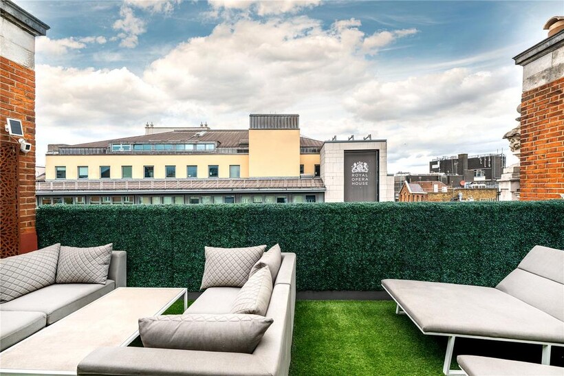 A splendid penthouse with a stunning wraparound roof terrace overlooking the rooftops of Covent Garden and beyond, available immediately on a furnished basis. Set within an imposing corner building on the edge of the Piazza, it forms part of a beautifully restored period development. The apartment combines contemporary finishes with exceptionally high vaulted ceilings and striking skylights, creating an impressive ultra-bright entertaining space. Located directly opposite the Royal Opera House, it is perfectly positioned to enjoy the vibrant lifestyle of the West End, with world-class restaurants, boutiques, and theatres just moments away.
