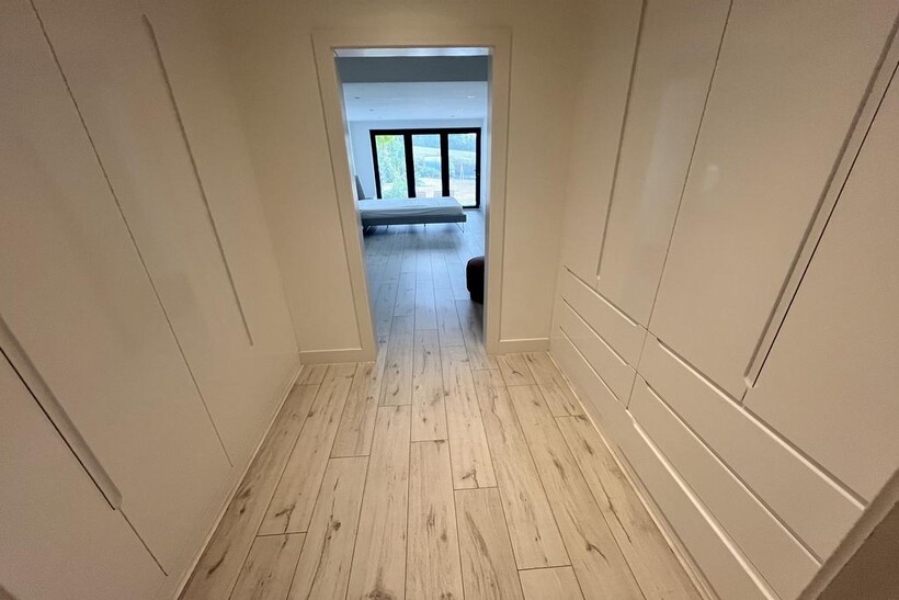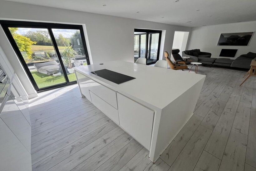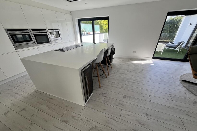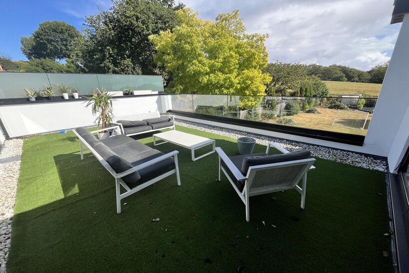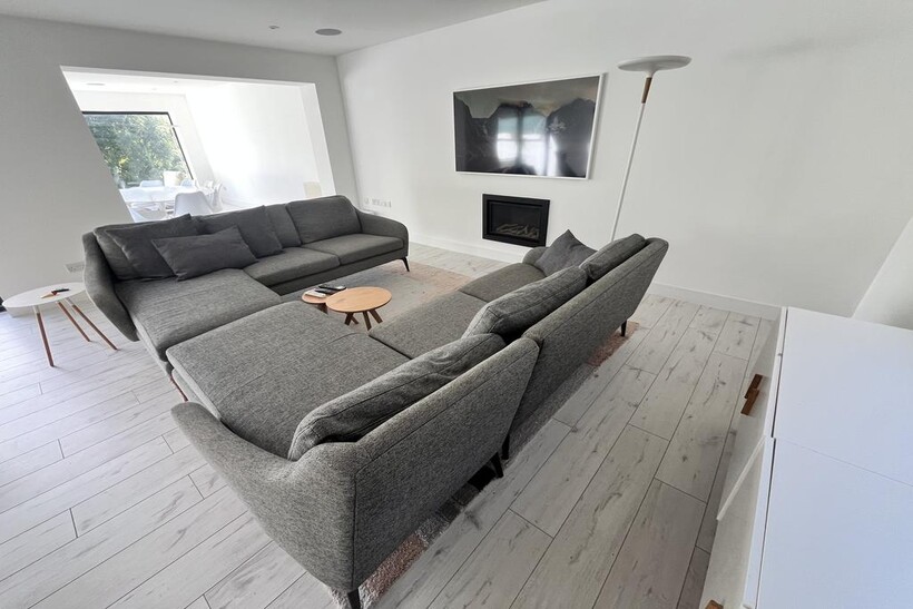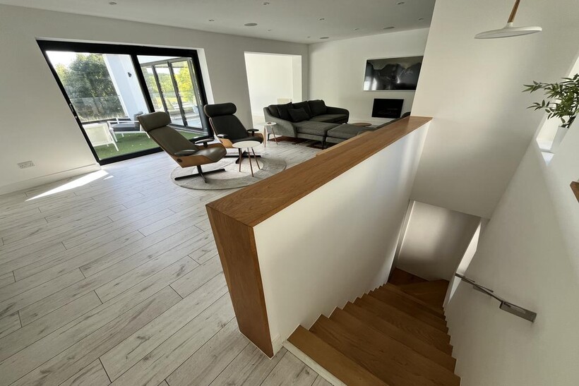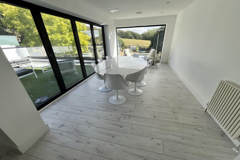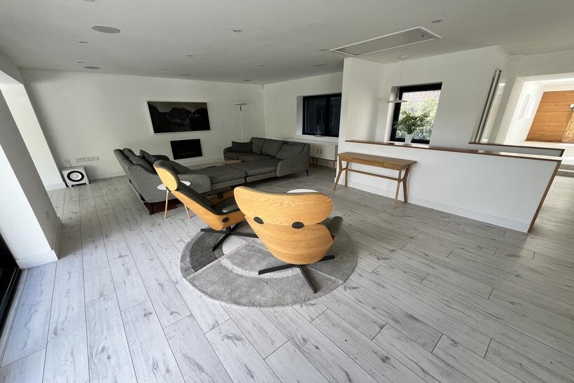 A unique and contemporary open-plan home of quality, enjoying a sought after, no-through road setting, and far reaching views from its elevated position. The house is set back off the road with driveway parking and a double garage, the west facing gardens to the rear are extensively lawned, and there are various terraces to enjoy. Internally there are 3 large bedroom suites and an independent annexe for teenager or staff accommodation. On the lower ground floor, there is also a large games room and on the upper floor is a vast kitchen which is open plan to the family area and dining room. This extensive entertaining space opens out to a elevated and private terrace of broad proportions. No deposit option available.