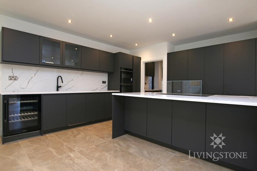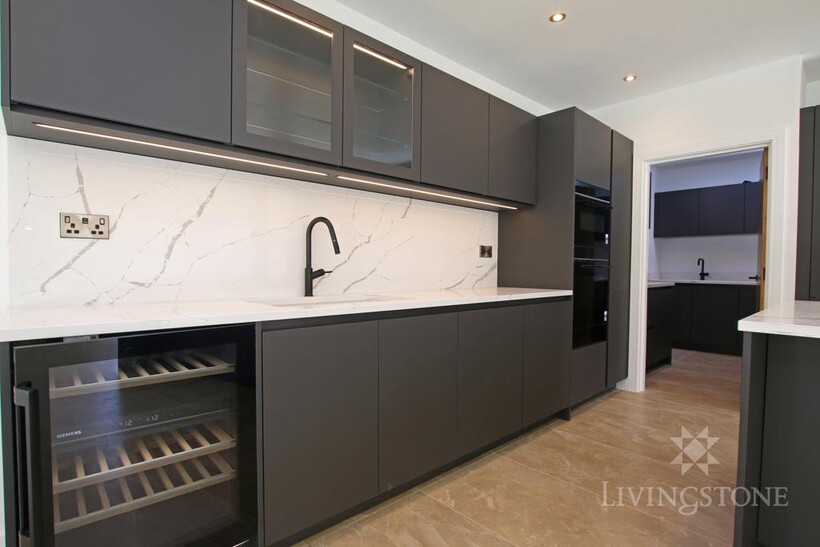 Siemens appliances including, fitted induction hob, rise and fall extractor, integrated full height fridge & freezer, integrated dishwasher and wine fridge;
