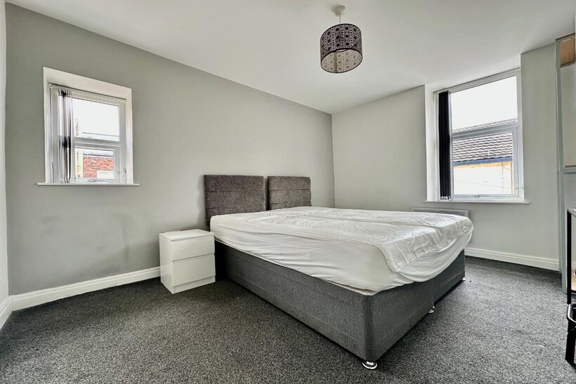 This first floor apartment is spacious throughout comprising of a large reception room to the front of the property, part-furnished with sofas, dinning table & TV. Two double bedrooms with beds, dressing tables and clothes storage. The modern kitchen is spacious and is furnished, providing plently of storage space, a fridge & microwave.