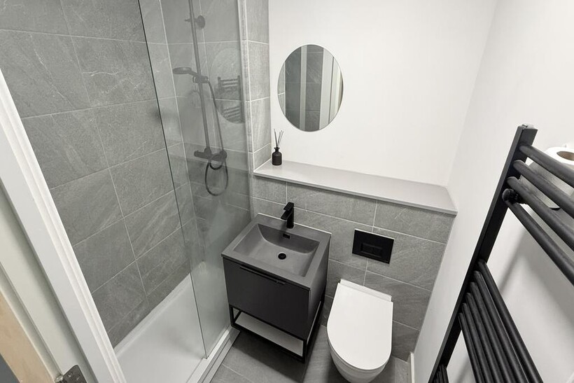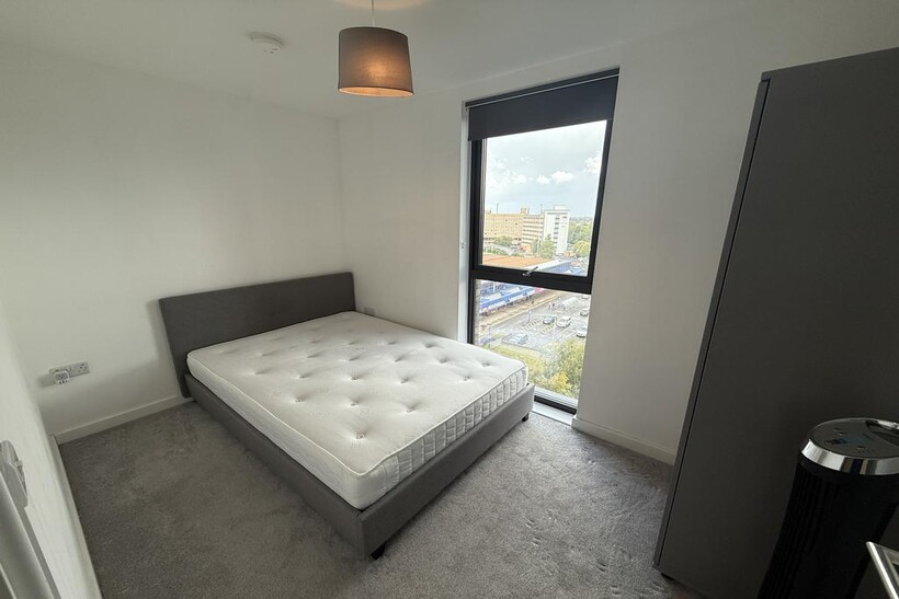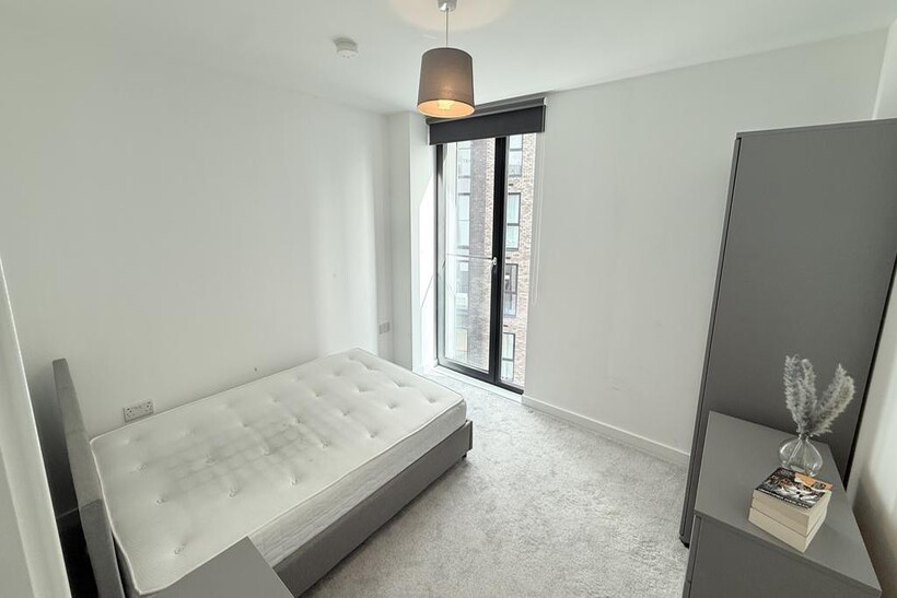 The apartment offers a open plan living area with handpicked furniture to match the feel of the apartment perfectly. Sleek and functional kitchen area with integrated appliances including electric hob, oven, fridge and freezer. There is plenty of natural light coming through this apartment with all the big floor to ceiling windows and overlooking the city centre.