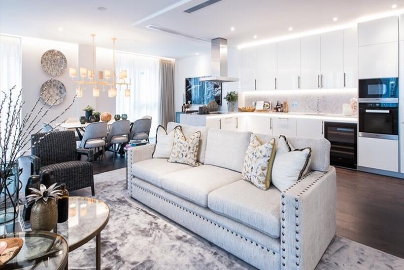 The apartment comprises a magnificent 868 Sq Ft reception room offering an ideal entertaining space with Samsung Smart TV's with Bose sound bars incorporating a built in Amazon Alexa to control the reception room lighting, TV, heating systems and electric privacy curtains along with a private Winter Garden. The reception room is open plan to a fully fitted kitchen featuring integrated Miele appliances and Hot Tap with floor to ceiling windows.