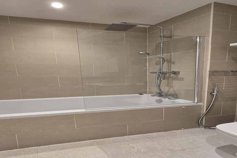 The accommodation comprises two double bedrooms, both of excellent proportions, alongside a spacious living area that provides direct access to the balcony, and the property includes a well-appointed tiled bathroom fitted with both bath and shower facilities. The main bedroom includes a large, spacious and stylish wardrobe.