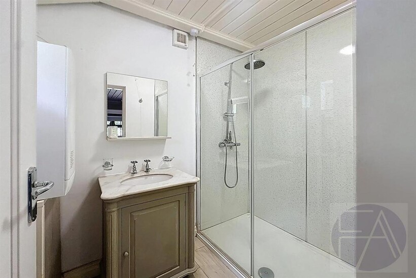 Upstairs, the first floor offers three generous double bedrooms and a nursery room, making it particularly appealing for families. The floor also boasts two contemporary bathrooms—one with a luxurious freestanding bathtub and the other with a practical walk-in shower.