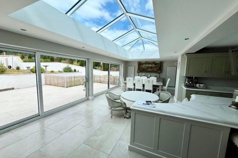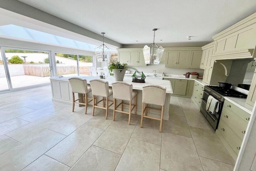 Spectacular open-plan kitchen and dining area with bespoke cabinetry and premium appliances