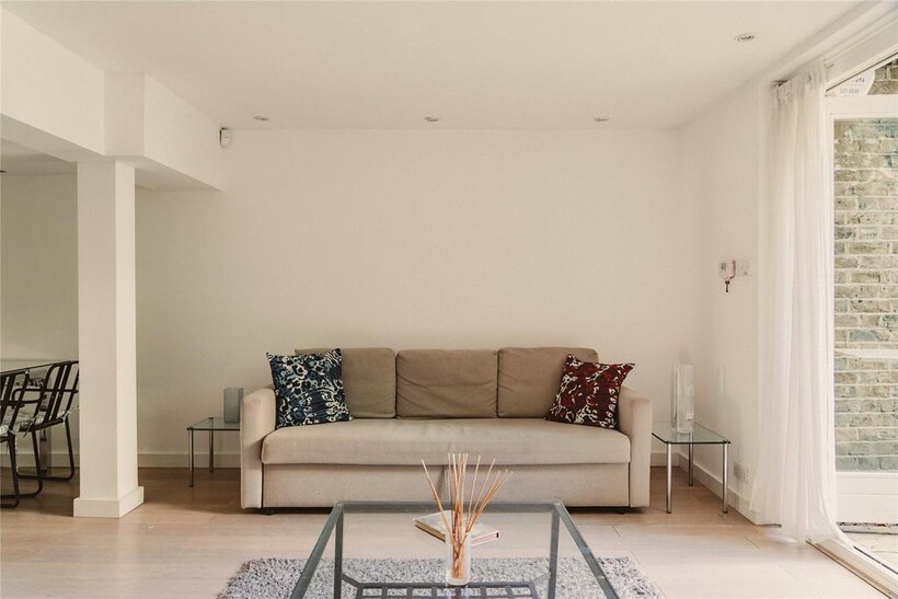 A beautifully presented apartment with generous outdoor space.Entering the flat on the lower ground floor, a corridor leads you down to an open-plan kitchen and reception room with high ceilings and French doors that fill the space with light.