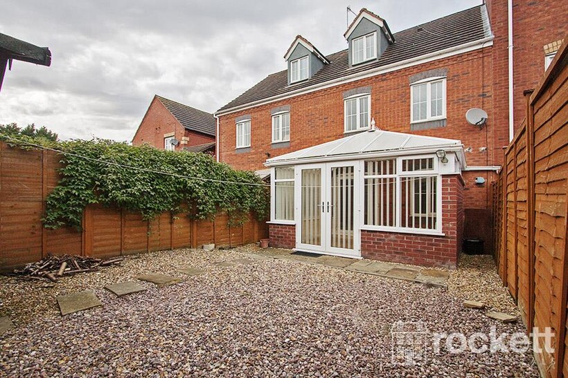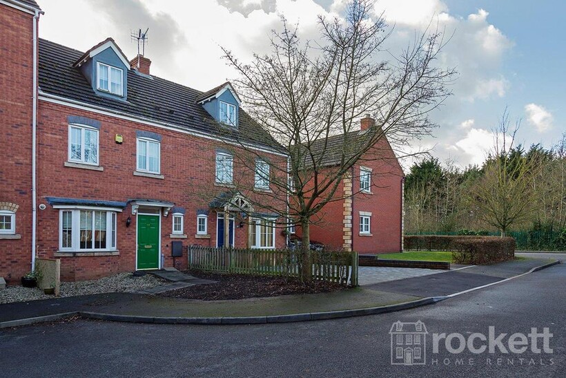 A 4 bedroomed, three storey town house, situated on a modern development within the popular location of Trentham Lakes. Offering easy access to local amenities and within close proximity of major commuter road networks.The spacious living accommodation comprises, on the ground floor :- Entrance Hall, Cloakroom / WC, Kitchen / Diner, Lounge and Conservatory. On the first floor :- Landing, Three Bedrooms two of which are doubles and have built in wardrobes and Family Bathroom. On the second floor :- Master Bedroom with built in wardrobes and an En Suite shower room. Further benefits include Upvc double glazing and gas central heating. Externally there are gardens to front and rear off road parking and a brick built garage (in a separate block).