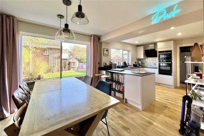 The kitchen is well equipped with a good range of modern fitted wall and base units with ample worktops and breakfast bar along with appliances including an oven, four ring induction hob, dishwasher and a wine cooler. Adjacent to the kitchen, the utility room provides further storage, space for a large fridge/freezer and an integrated washing machine. The utility also offers direct access out into the garden, handy for those with dogs or muddy boots.