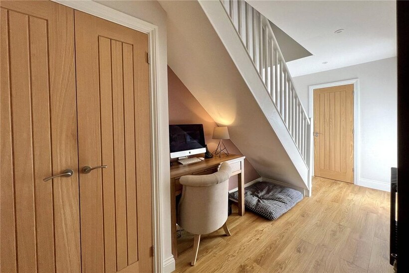 *NOW RESERVED* A well-appointed and beautifully presented four bedroom unfurnished home with garage to rear set in the heart of the picturesque village of Seer Green, just over 1/2 mile from fast train links into London.The property is entered directly into a welcoming reception hall with modern cloakroom, handy coat storage cupboard and space under the stairs for a study area. To the left of the hallway, the 20 ft reception room is bright thanks to two large picture windows which also provide views out over a central green. A large opening leads through to the fantastic 20ft kitchen diner.