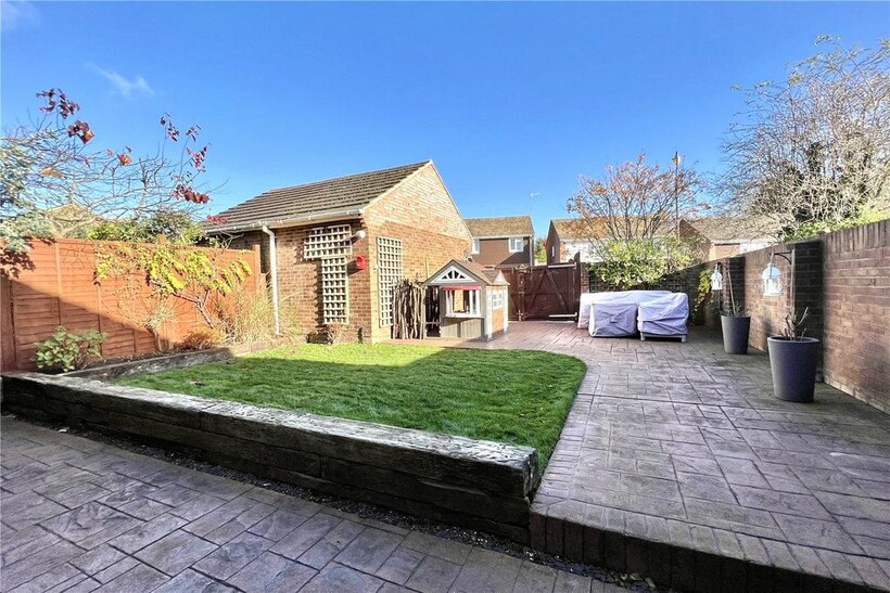 To the front of the property, a path leads to the front door bordered by lawn shrubs and bushes. The enclosed rear garden is laid to lawn with a large patio area to the rear and side of the house along with large wooden gates giving access to the rear of the property. There is a 17ft garage with light and power to the rear of the property with driveway for parking.