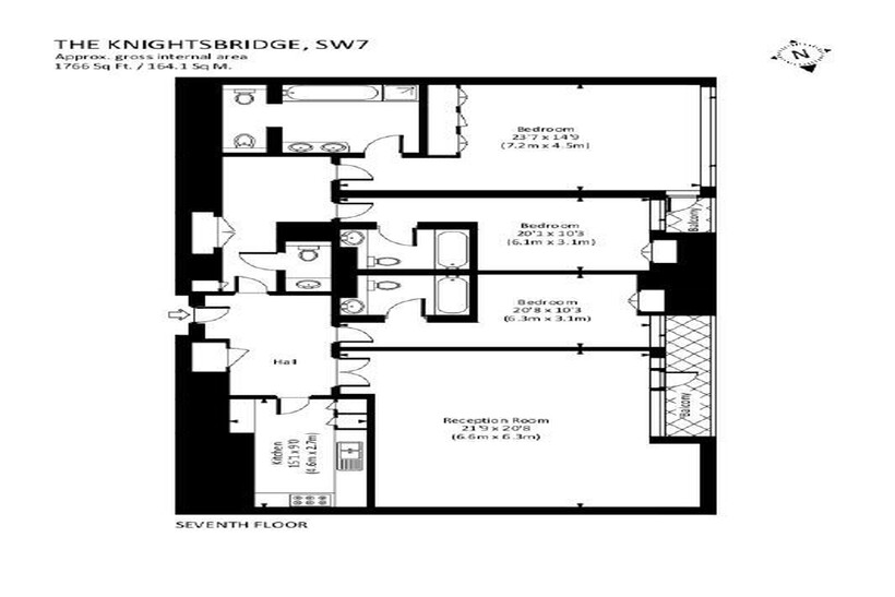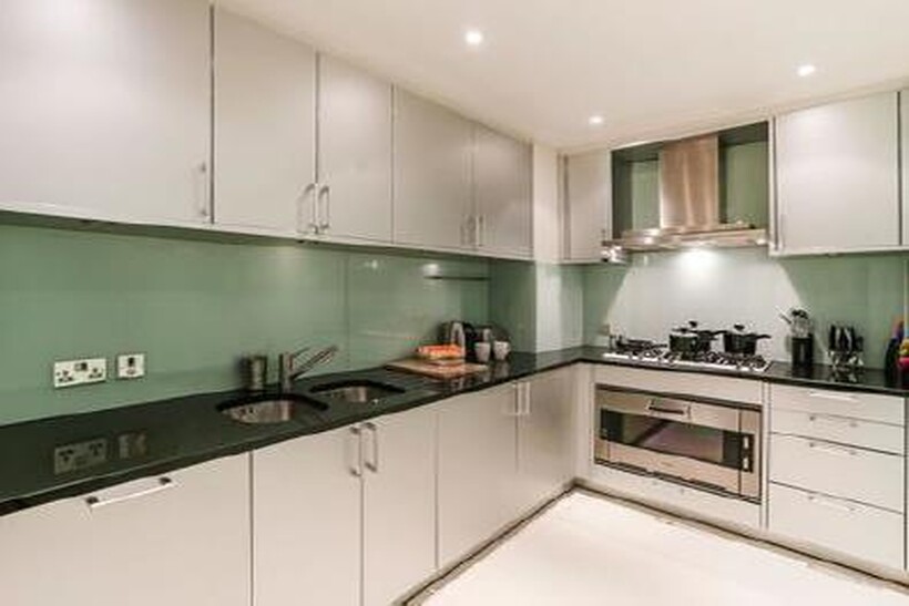 and eateries in Knightsbridge, you will find this double aspect reception room with dining area, fully fitted kitchen, three double bedrooms, three and a half bathrooms, fully furnished apartment with an air cooling system and wood floors throughout. It benefits from West facing views over Brompton Oratory