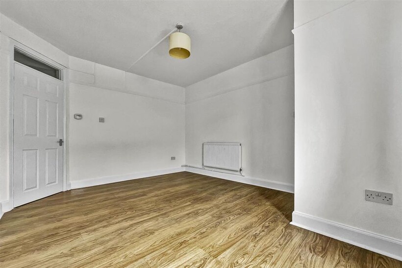 Lounge with laminate flooring.