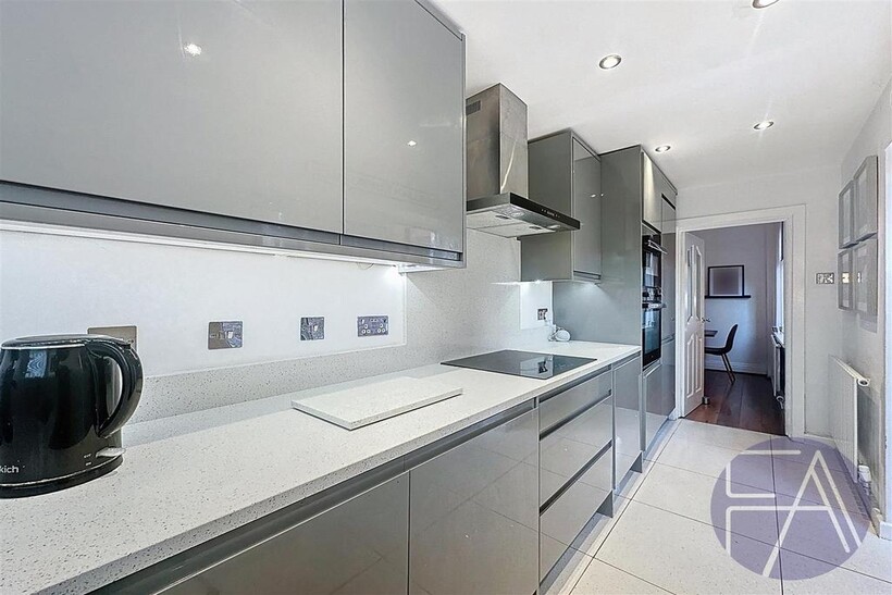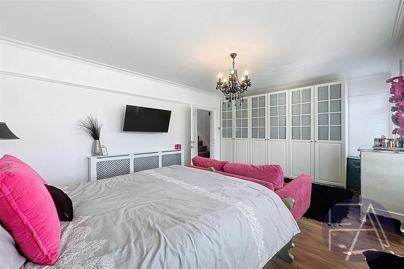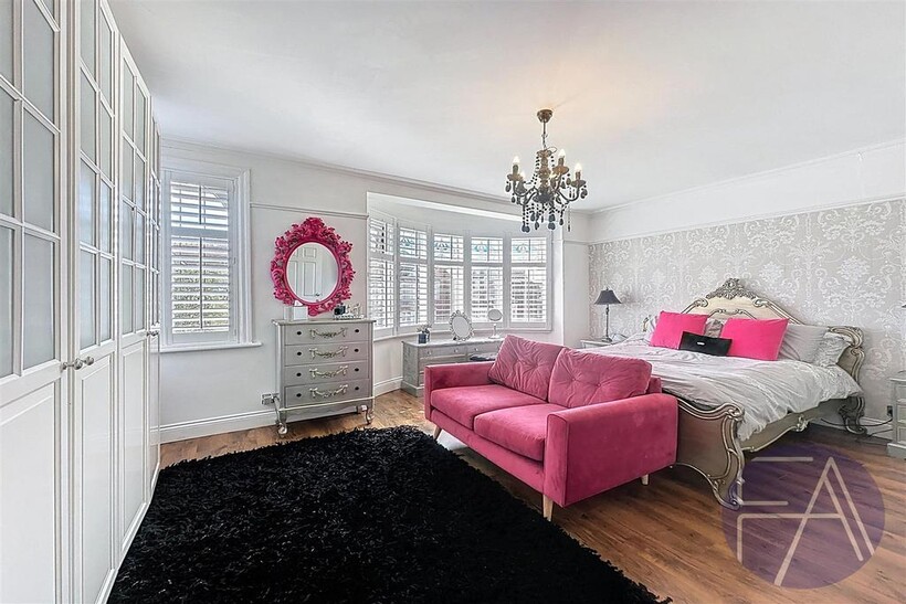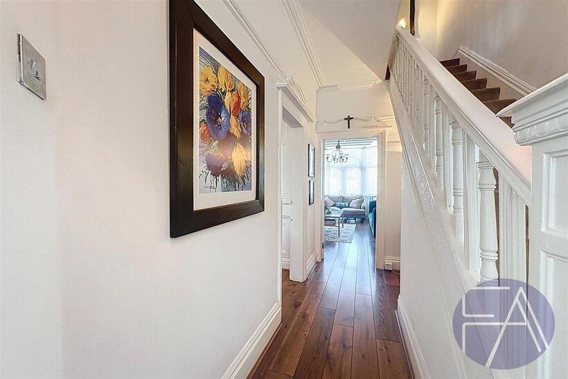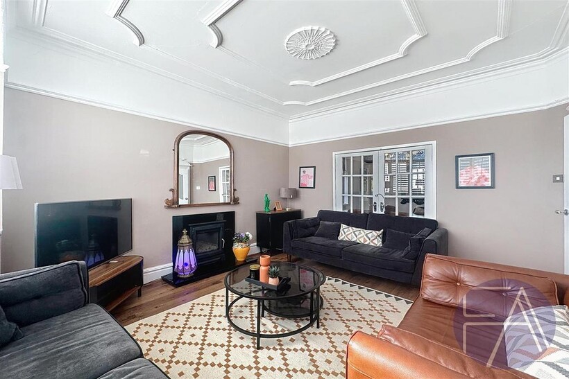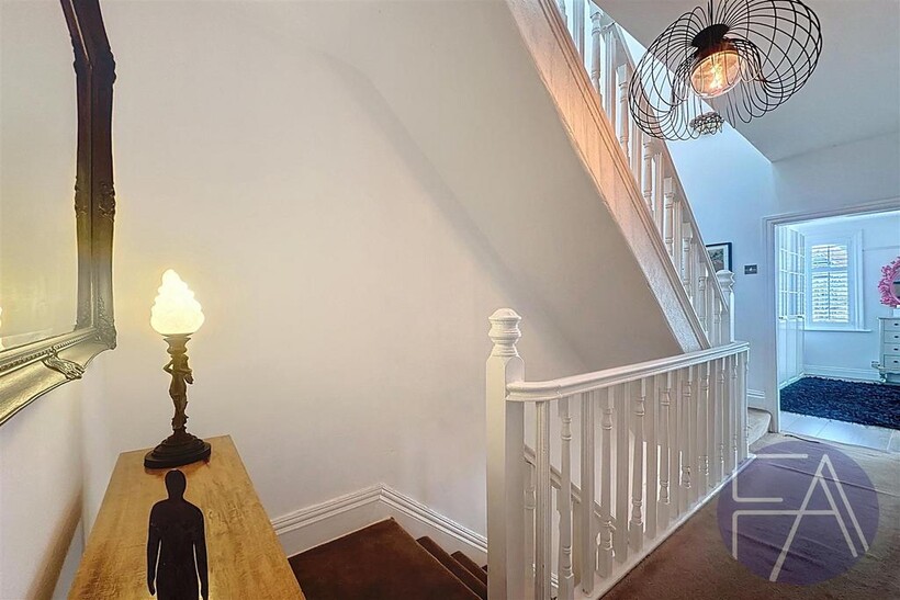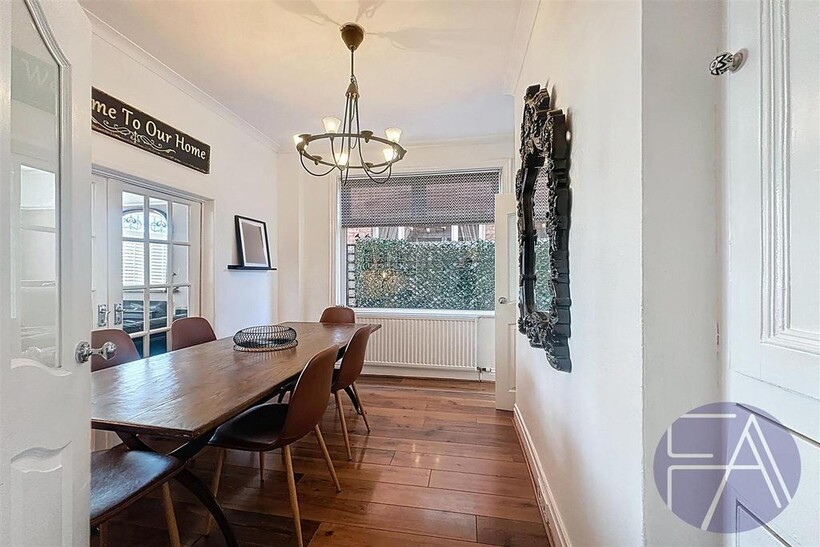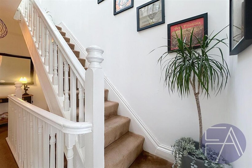 The ground floor of the property comprises an inviting entrance hallway, two spacious lounges with charming bay windows, a stylish dining room, a modern kitchen with integrated appliances and sliding doors leading to the rear garden, as well as a convenient understairs storage cupboard.