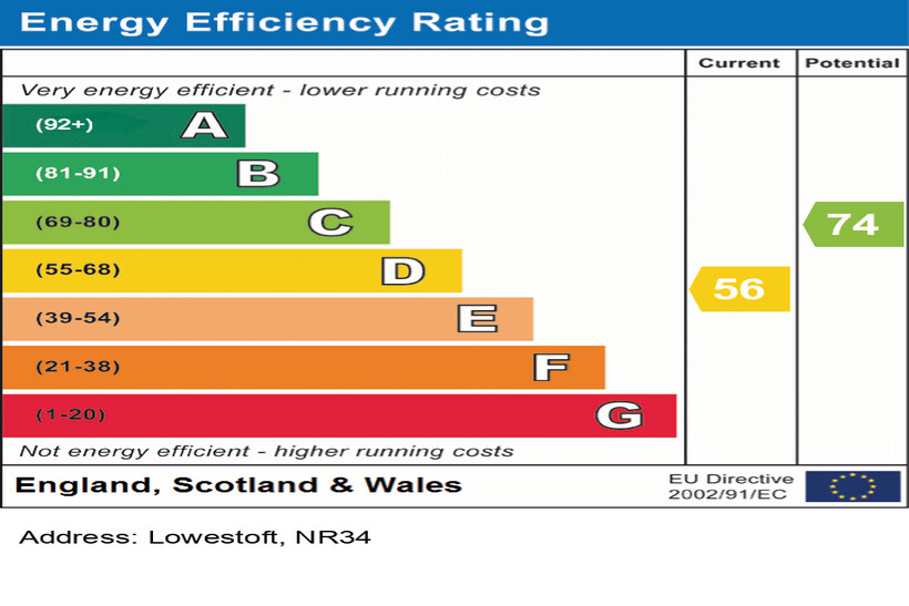 The property is situated in a family-friendly area with access to local schools, parks, and shopping facilities. Lowestoft is a coastal town in Suffolk, known for its beautiful beaches and vibrant community. The town offers a range of amenities, including shops, restaurants, and leisure facilities, catering to diverse needs and interests. The property’s energy performance is supported by its full double glazing and gas central heating, contributing to a comfortable living environment.