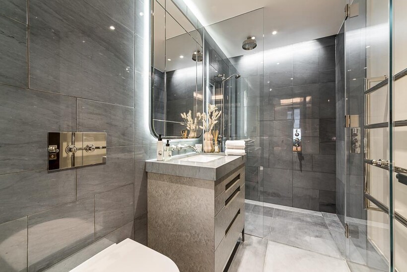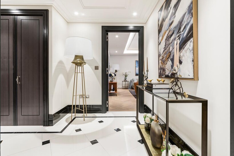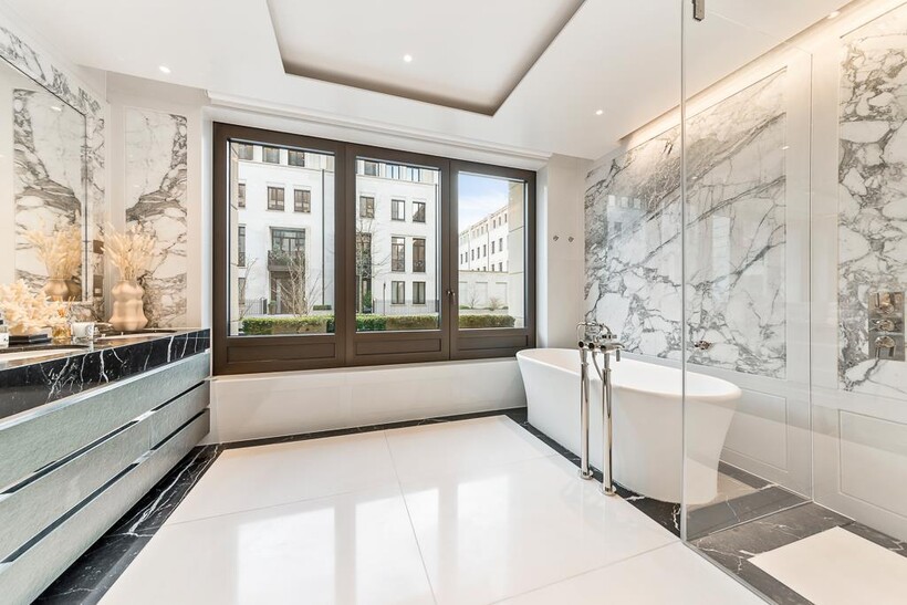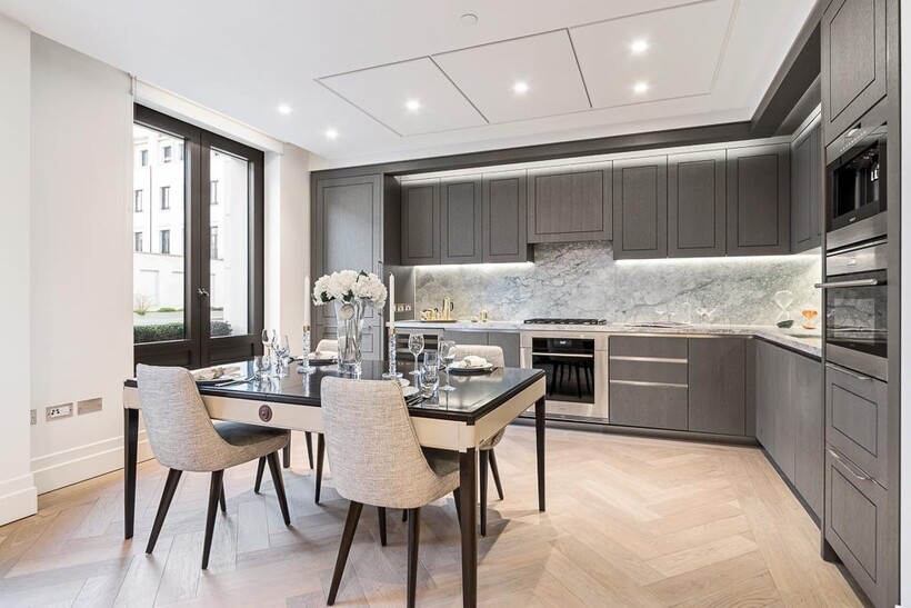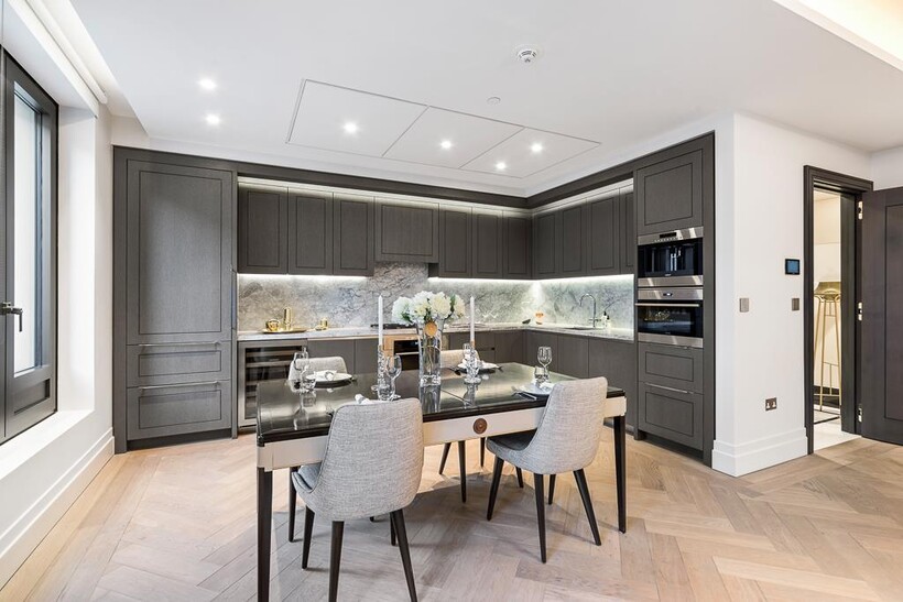 The apartments offer modern conveniences and high spec finishes which include under floor heating, comfort cooling, Crestron system, Lutron lighting, Wolfe and Sub Zero appliances, bathrooms clad in feature vein-matched Arabesca marble panels, kitchens carved from Bianca Eclipse natural stone and European Oak woodwork.