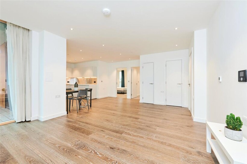 A contemporary apartment to rent in a highly sought after development in Queens Park. The property benefits from a 24hr concierge, communal gardens and underfloor heating throughout. The accommodation comprises a principal bedroom which boasts an en suite shower room and a built-in wardrobe, a further double bedroom, additional modern bathroom, bright and spacious reception room with wood flooring, an open-plan kitchen fitted with modern appliances, and a private balcony overlooking the communal gardens.