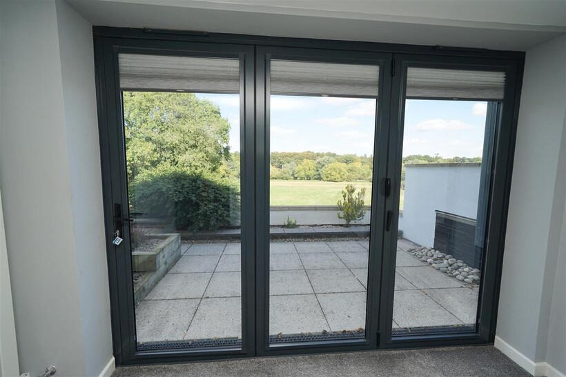 Two double bedrooms to the ground floor with large built-in wardrobe units (bedroom two with bi-fold doors facing onto the terrace), and ground floor bathroom.