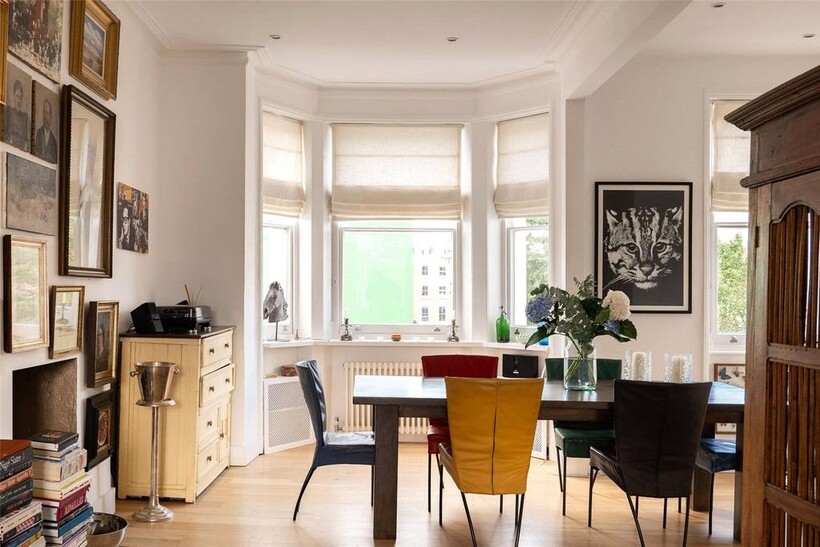 Spacious and stylish upper maisonette with wonderful views in a pastel-painted townhouse in Notting HillEntering the flat on the ground floor, a staircase leads up to the first-floor reception room. This is a wonderful living space, with high ceilings and full-length French doors opening onto balconies. Wooden floors, an elegant cornice and a stylish fireplace add to the sense of grandeur. This floor also contains a guest WC.