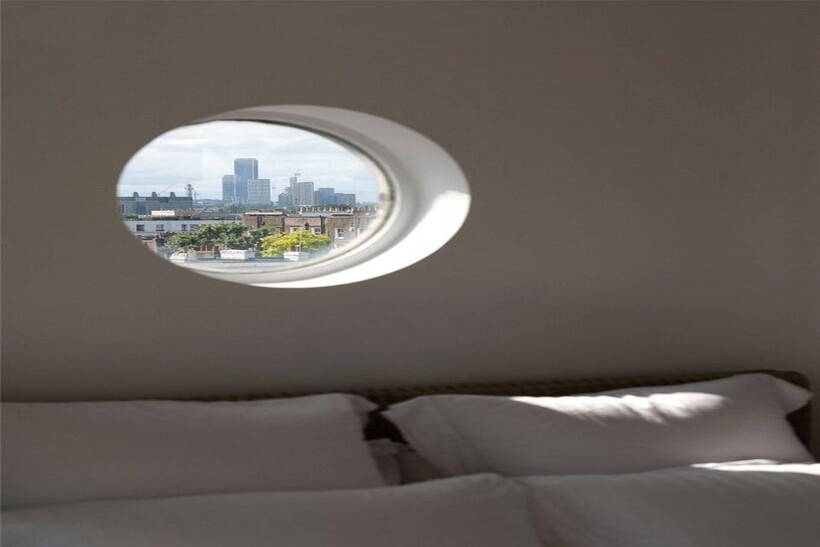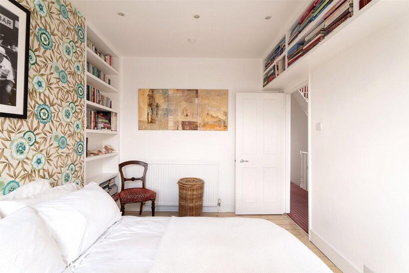 The third floor offers a pair of bedrooms, sharing a bathroom with a bath. In between is a dressing room or storage space. Furthermore, the principal bedroom occupies the entire fourth floor, with an ensuite bathroom and sliding French windows opening onto the roof terrace. As a result, this well-lit room has beautiful views on three sides.