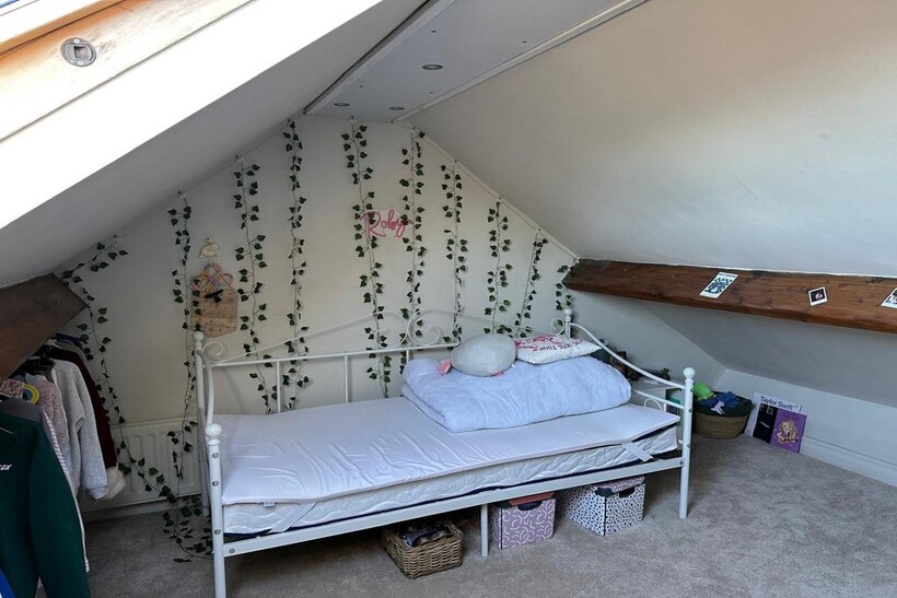 Upstairs, you'll find two generously sized double bedrooms, and a staircase which gives access to an attic which is fully carpeted, centrally heated, with velux window providing open country views, makes for an excellent additional space.To the rear, the property benefits from a handy shed and outdoor space, adding extra practicality.