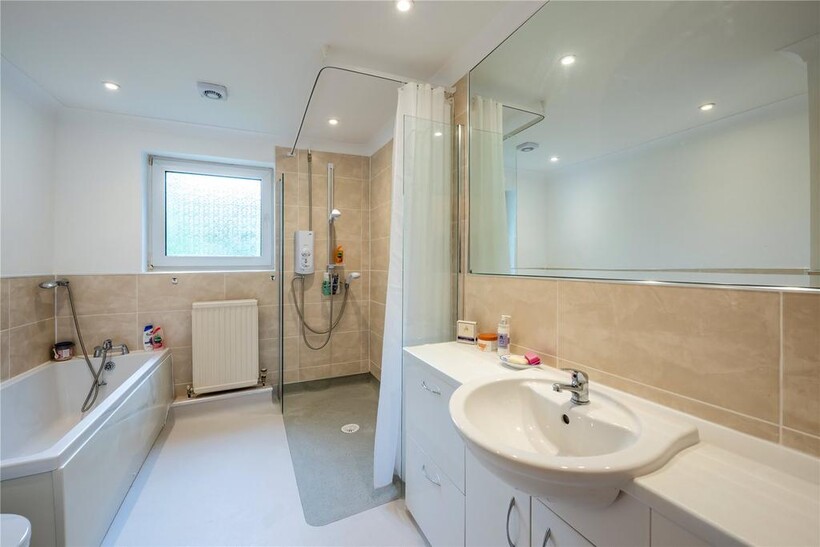 Three double bedrooms are set along the inner hall. Two of the bedrooms overlook the front garden and the third overlooks the courtyard to the side, all of them benefit from fitted wardrobes.