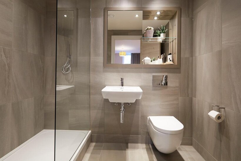 Contemporary with porcelain tiling throughout. House bathroom, plus en-suite to master bedroom, each with deluxe rainfall shower, WC and heated towel rail, plus bespoke vanity cabinet with LED lighting.