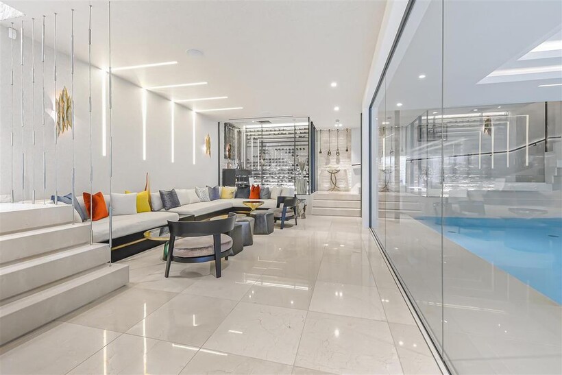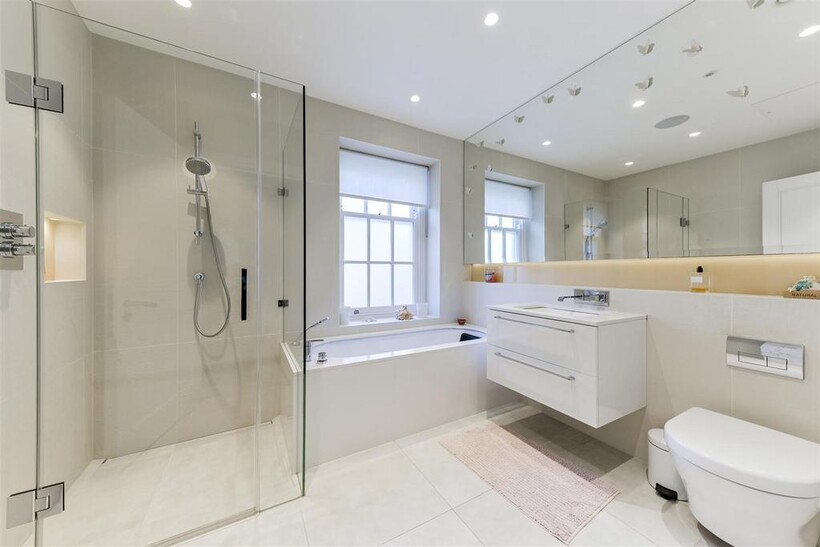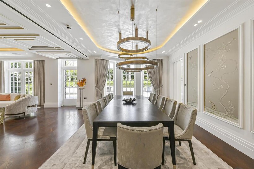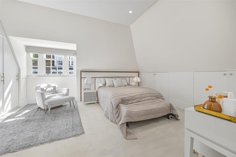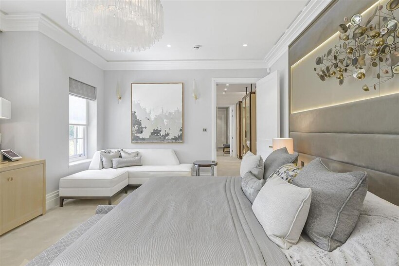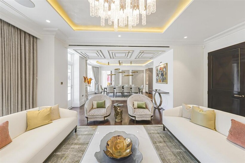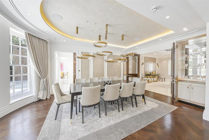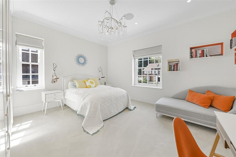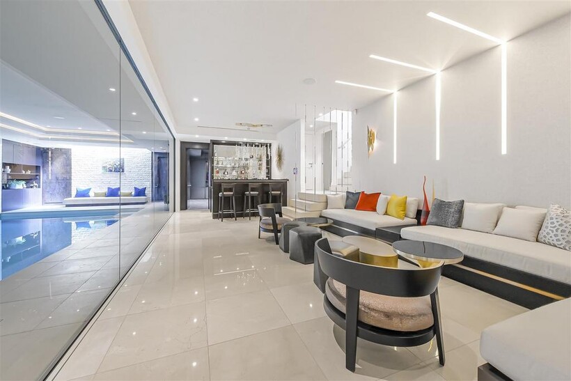 On the ground floor, the house boasts three elegant reception rooms, study, large eat-in kitchen with breakfast area and guest w/c, The second floor comprises of a master suite and 2 ensuite bedrooms. The third floor has a further 2 ensuite bedrooms and a playroom/library. The basement has a large indoor swimming pool, cinema, lounge with bar, wine cellar, staff bedroom with bathroom and utility room. Off street parking for up to three cars and a generously sized garage with a beautiful landscaped garden.