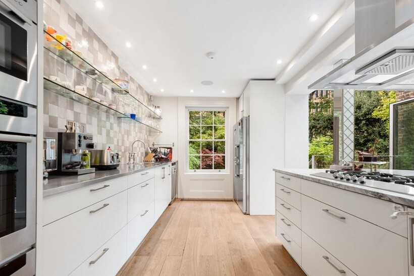 Inside, you'll discover five spacious bedrooms, three bathrooms (two of which are luxurious en-suites), and two handy guest WCs, plus a cozy separate study—perfect for a home office. The two grand reception rooms bask in natural light, creating an inviting atmosphere, while the contemporary kitchen, complete with integrated appliances, flows effortlessly into a sunlit dining area that leads out to your very own private west-facing terrace and garden paradise. The lower level houses a self-contained flat with own entrance from Duncan Terrace, ideal for an au pair or family. There is also a utility space, additional bathroom and further reception space with flexible use on this level,