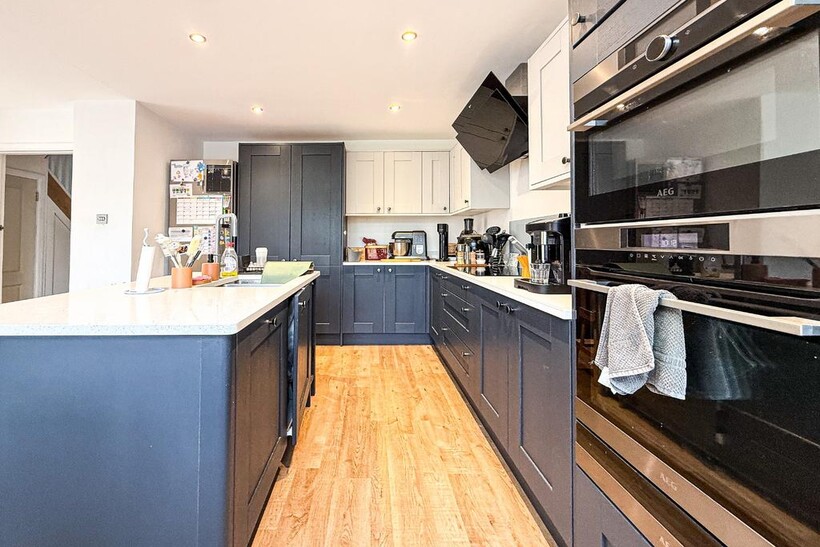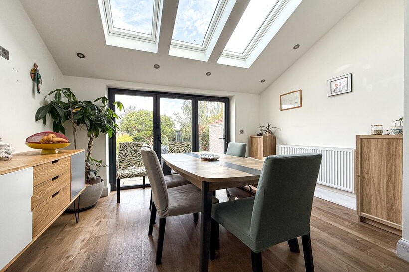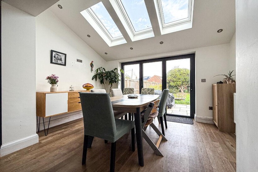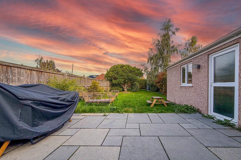 Outside, the property benefits from a large rear garden, ideal for outdoor dining and play, along with a garage and driveway parking for up to three cars.