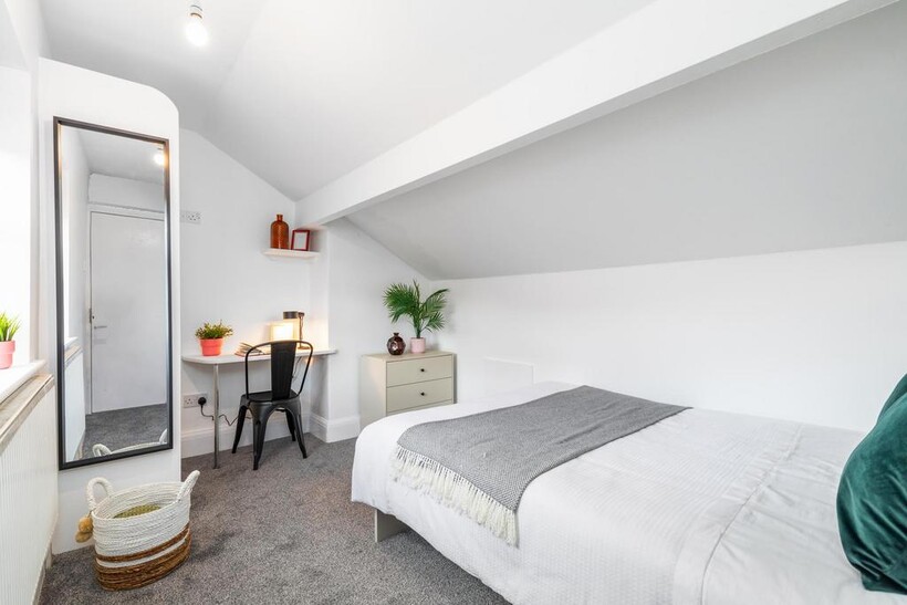 • 6 large double bedrooms, fully furnished with everything you need: double bed, wardrobe, chest of drawers, bedside table, full-length mirror, desk, and chair - ideal for both study and relaxation.