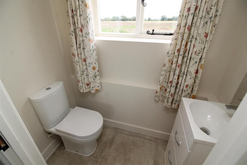 Cloakroom - From the hallway a door opens into the cloakroom which comprises of a low level flush WC, vanity sink with draws under and mixer tap. Small opening window, extractor fan inset spotlights.