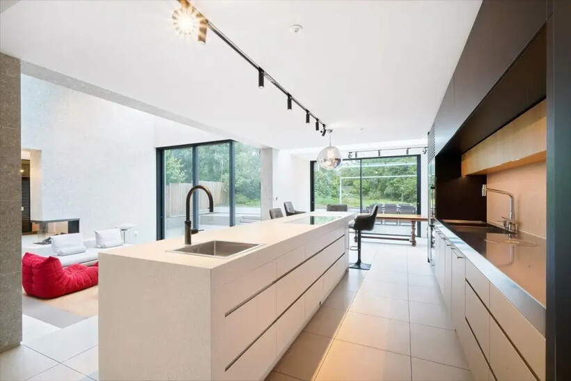The Ground Floor reception area is open plan comprising of a modern display kitchen with a large island and top-end appliances, dining and living space along with a custom-made bar with specialist wine storage. This floor also boasts a luxurious period bedroom suite, a fully equipped cinema room, an ergonomic utility space including a secondary kitchen and pantry, a boot room with a dog shower and a service bedroom suite.