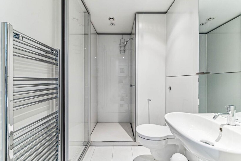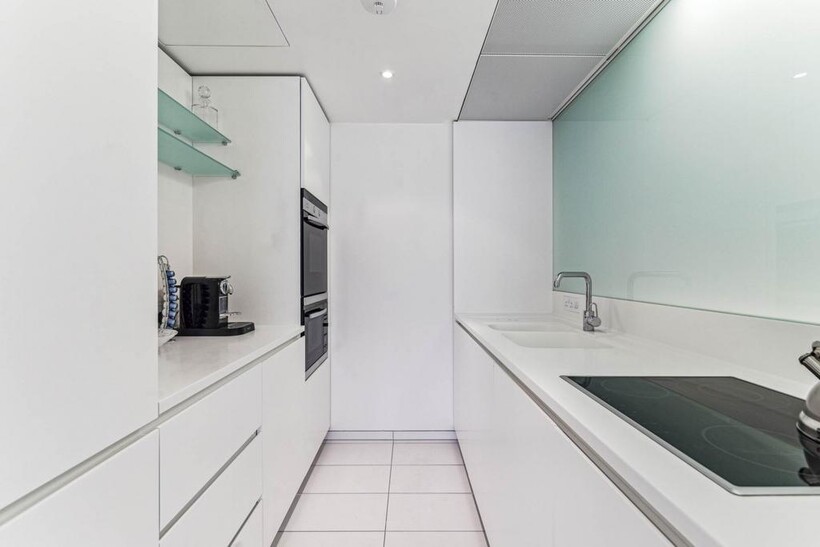 This bright and generously proportioned two-bedroom apartment) is positioned on the eighth floor of the iconic Albion Riverside development. This south-facing residence boasts far-reaching views across Battersea Park and has been thoughtfully refurbished to a high standard.The property features elegant oak wide-board flooring throughout the reception areas, enhancing the sense of space and light. The master bedroom includes an en suite, while the second bedroom is conveniently located adjacent to a well-appointed family shower room.