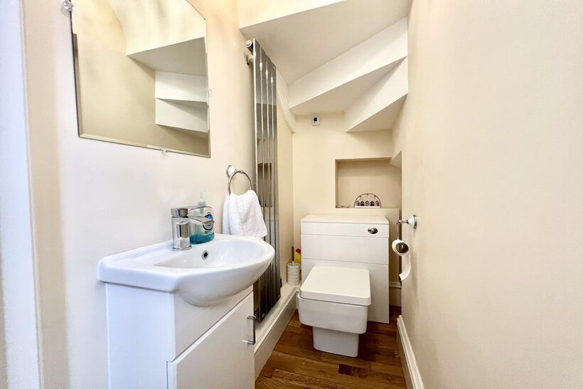 The accommodation comprises an inviting entrance hall, cloakroom, a spacious lounge, and a beautifully presented kitchen/diner with fully integrated appliances and high ceilings. The first floor features two double bedrooms, one with a concealed en-suite, while the top floor provides two further doubles and a modern family bathroom.