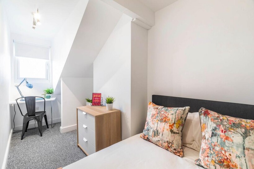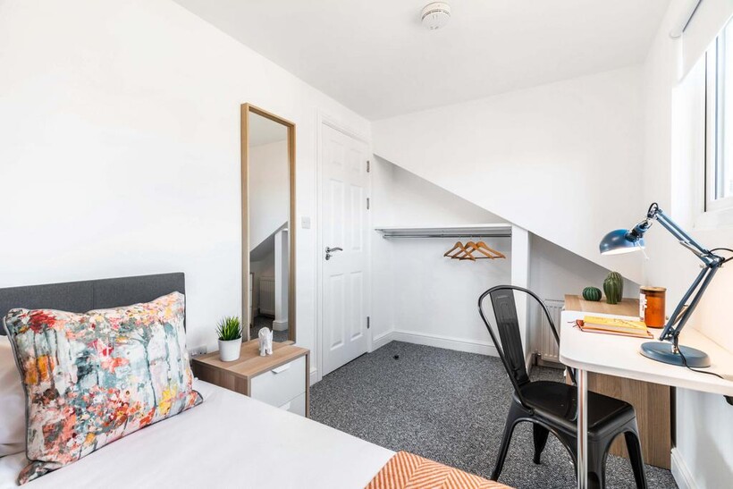 • 6 large double bedrooms, fully furnished with everything you need: double bed, wardrobe, chest of drawers, bedside table, full-length mirror, desk, and chair - ideal for both study and relaxation.