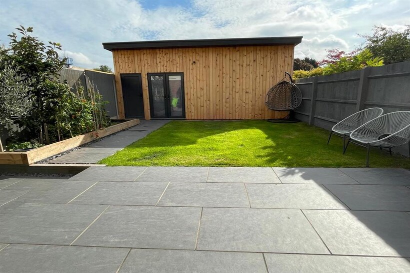 The property benefits from double glazing, gas fired central heating, off road parking, garage and an enclosed landscaped rear garden with studio room.