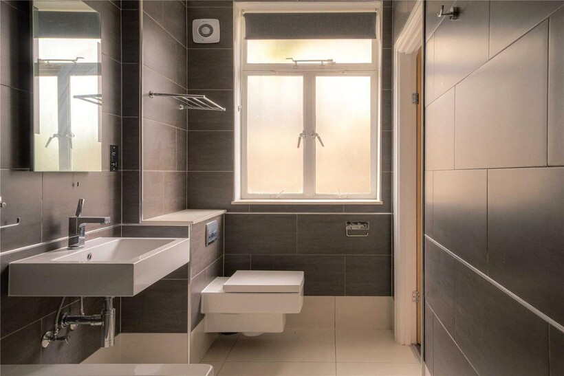 Beautifully presented three-bedroom flat in elegant period conversion.Entering the flat, a welcoming hallway flows through to a bright reception room with bay window overlooking the communal gardens. Off the reception room is a family bathroom with bath and shower. The contemporary kitchen features fitted units, integrated appliances and ample workspace. The principal bedroom offers generous proportions with bay window and ensuite bathroom, whilst two additional well-proportioned bedrooms provide flexible accommodation. All three bedrooms benefit from built-in storage. A separate guest washroom completes the layout.